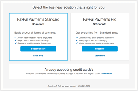 Either a Paypal Personal Premier or a PayPal Business Account enable you to accept payments.